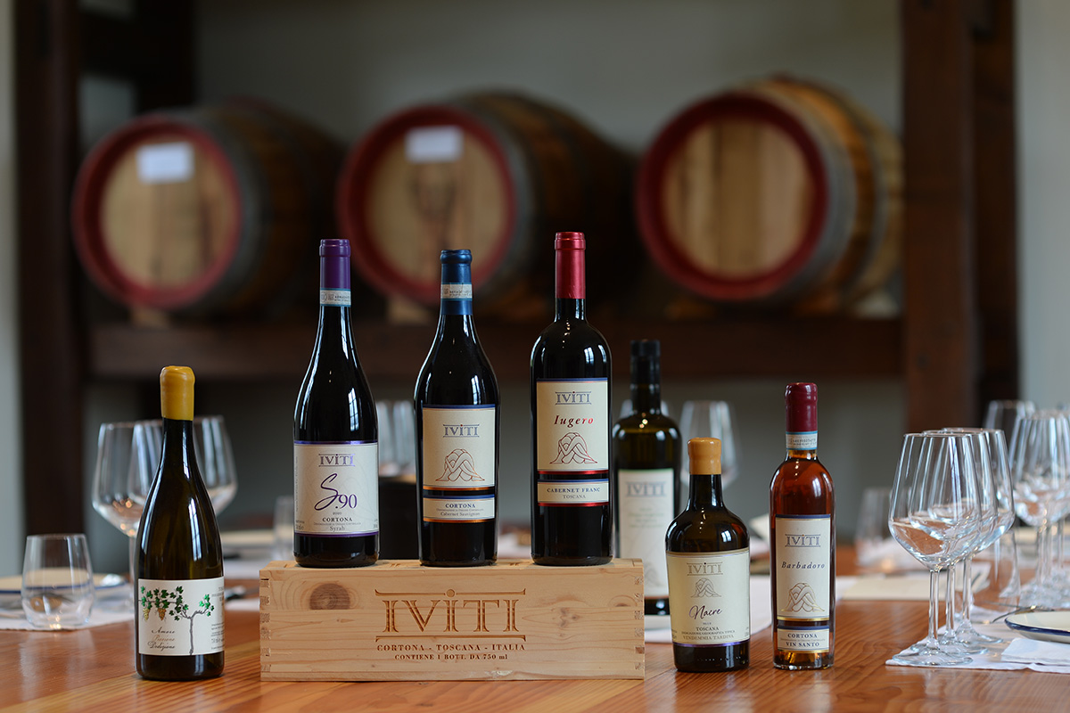Guided tour of our vineyards and cellar, tasting of 4 of our wines (1 white IGT Toscano bianco 3 red Cabernet Sauvignon – Cortona Doc, Syrah Cortona Doc “S90” and our “Cru” “Iugero” 100% Cabernet Franc), paired with typical local products, cold cuts and cheeses, and our extra virgin olive oil.