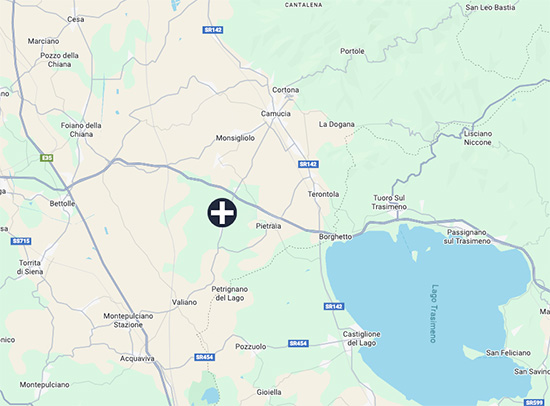 It is located in a few kilometers from Cortona, in the Valley Valdichiana, Tuscany, Italy.